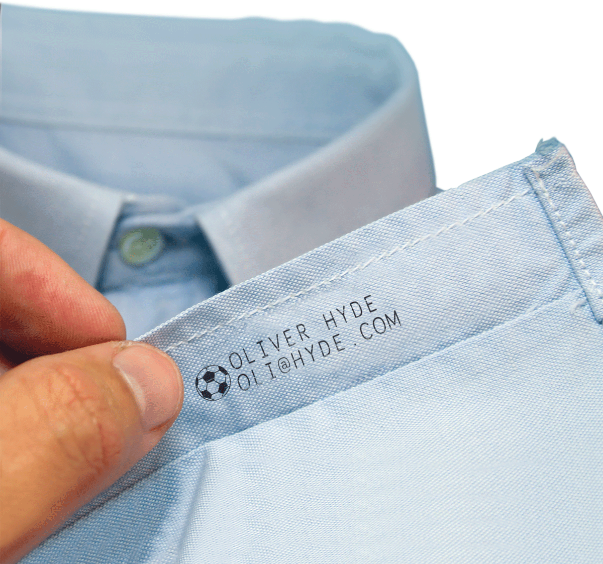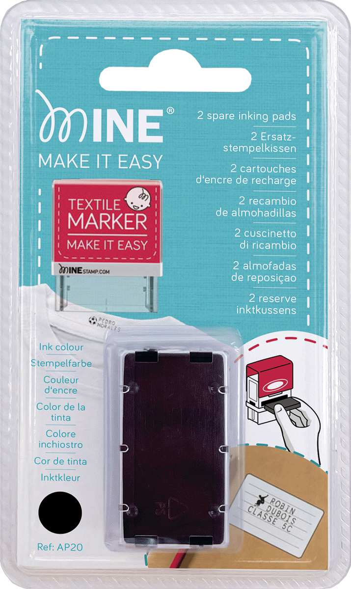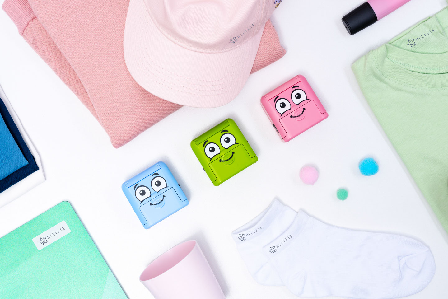 Sello práctico y fácil de usar para marcar prendas textiles.